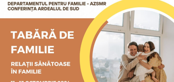 Sunteți invitați la Tabăra de Familie ce va avea loc în perioada 11–13 octombrie 2024 la Campus AZSMR Porumbacu de Sus. Tema taberei va fi „Relații sănătoase în familie“. Activitățile organizate sunt…